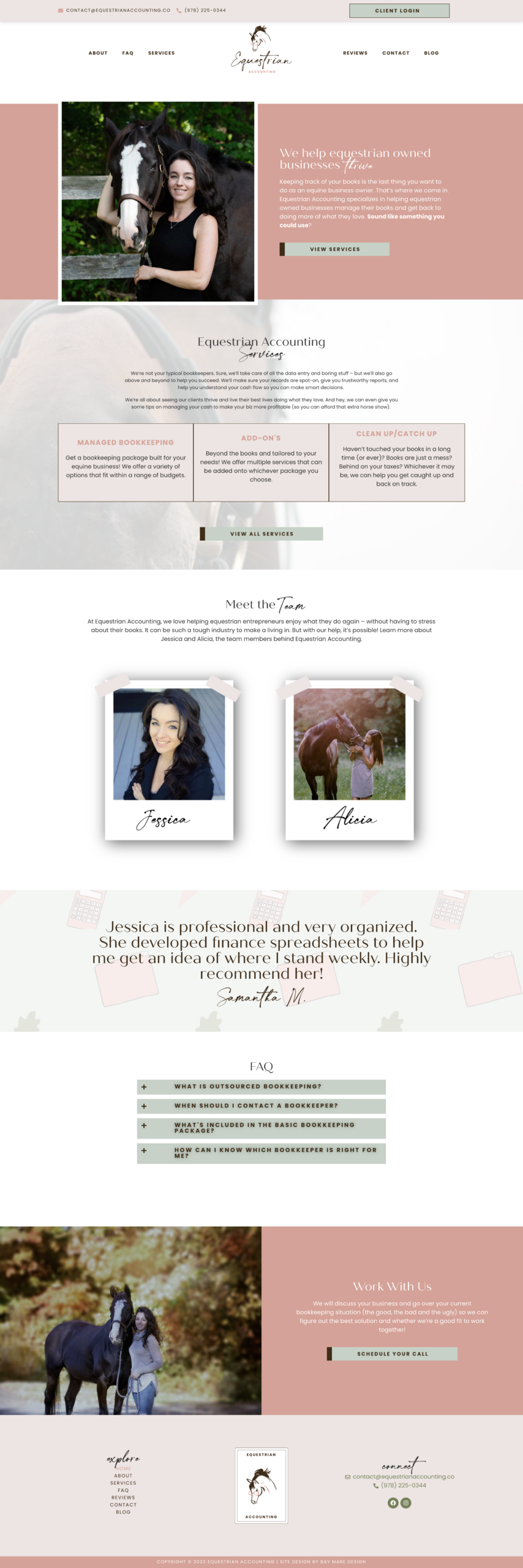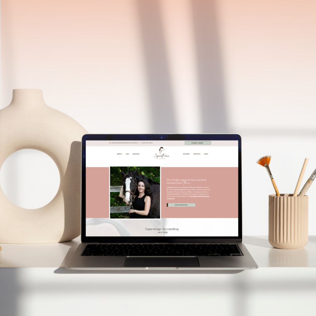 When Jessica first reached out, she was ready to switch her original bookkeeping firm to an equestrian based one. We chatted through the benefits of choosing a niche, and started brainstorming ideas that would bring Equestrian Accounting to life. I took the playful, down to earth vibe and mixed it with several feminine elements to bring you the beautiful branding + website design that you see today.